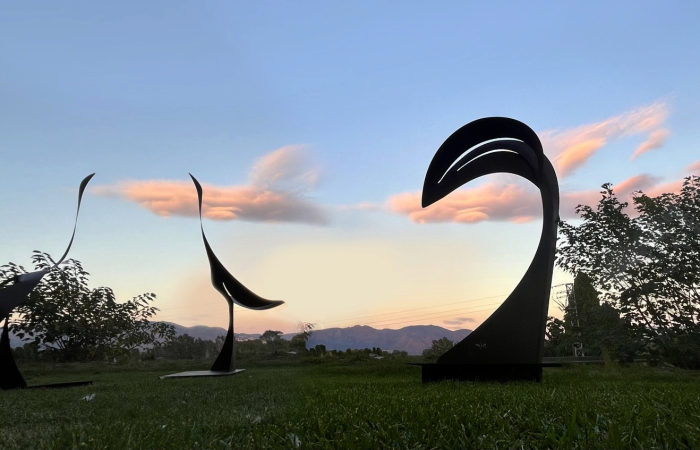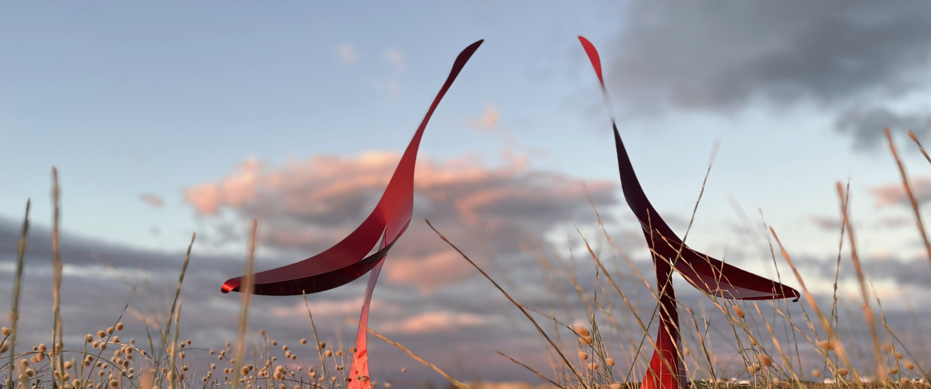 Mobiles et souples, les sculptures « Les oiseaux du vent » prennent vie grâce à la force du vent. Elles dansent, oscillent, tout en jouant dans leur migration avec la diversité des paysages au tour du monde.